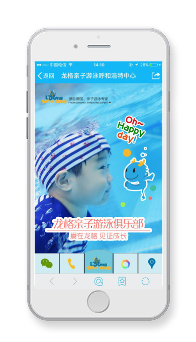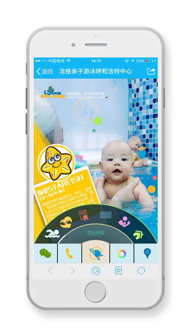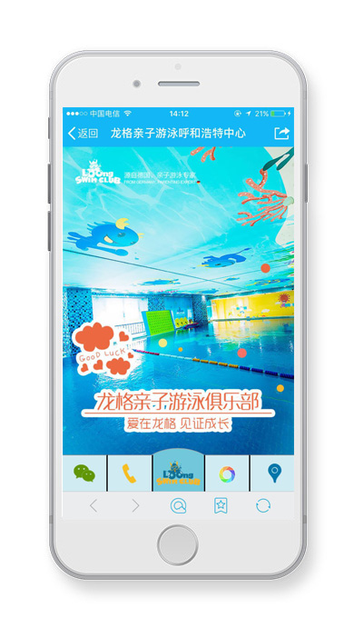 龍格親子游泳呼和浩特中心微網(wǎng)站平臺(tái),呼搜網(wǎng)為龍格親子游泳呼和浩特中心提供活動(dòng)策劃、微網(wǎng)站開發(fā)、微信支付、支付寶支付、店內(nèi)卡卷消費(fèi)、微砍價(jià)、搖紅包等一系列活動(dòng),為該店鋪帶來了諸多線下客戶。