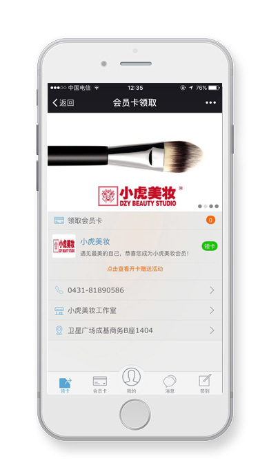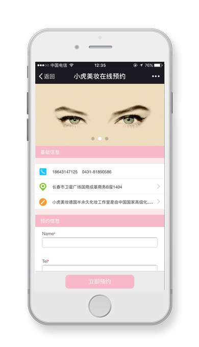 小虎美妝工作室微信公眾平臺(tái),用戶可以直接在平臺(tái)預(yù)約、購買和參加各種活動(dòng),呼搜網(wǎng)從策劃到開發(fā)上線全程提供服務(wù)。