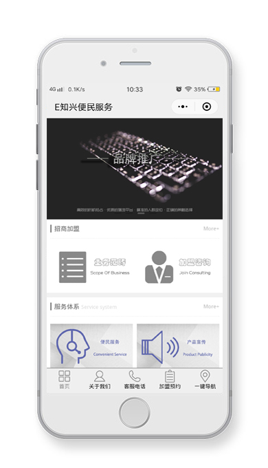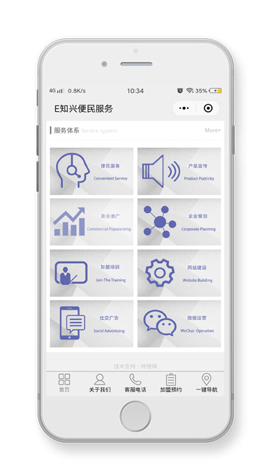 E知興便民服務(wù)平臺小程序,用戶可以直接在平臺自主預(yù)約,一鍵撥號、一鍵導(dǎo)航等服務(wù),呼搜網(wǎng)從策劃到開發(fā)上線全程提供服務(wù)。