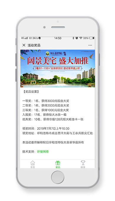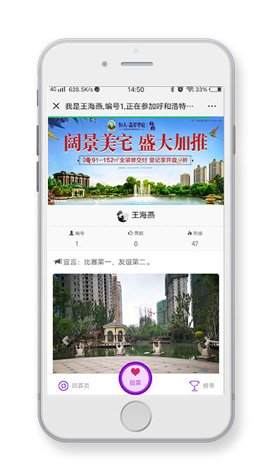 2019年6月恒大翡翠華庭新樓盤上線加推特舉辦了“翡翠杯攝影大賽”線上評選活動,此次活動由呼搜網(wǎng)絡(luò)為其提供微信平臺技術(shù)支持;本次攝影大賽活動贏得了眾多粉絲的參與互動為恒大翡翠華庭贏得了極好的口碑。