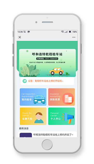 呼和浩特市乾程檢車站微網(wǎng)站,是呼搜網(wǎng)絡全稱定制開發(fā)的微網(wǎng)站;其中功能包括:預約檢車,駕校報名,車輛代檢,個人中心,預約記錄,生成代金券海報,電話,導航等功能;