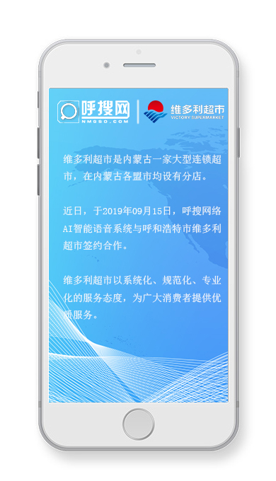 2019年09月15日呼搜網(wǎng)絡(luò)AI智能電話與呼和浩特市維多利超市簽約合作