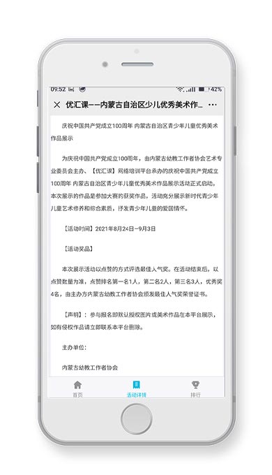 為慶祝中國共產(chǎn)黨成立100周年,由內蒙古幼教工作者協(xié)會藝術專業(yè)委員會主辦、【優(yōu)匯課】網(wǎng)絡培訓平臺承辦的慶祝中國共產(chǎn)黨成立100周年 內蒙古自治區(qū)青少年兒童優(yōu)秀美術作品展示活動正式啟動。本次展示的作品是參加大賽的獲獎作品,活動充分展示新時代青少年兒童藝術修養(yǎng)和綜合素質,抒發(fā)青少年兒童的愛國情懷。